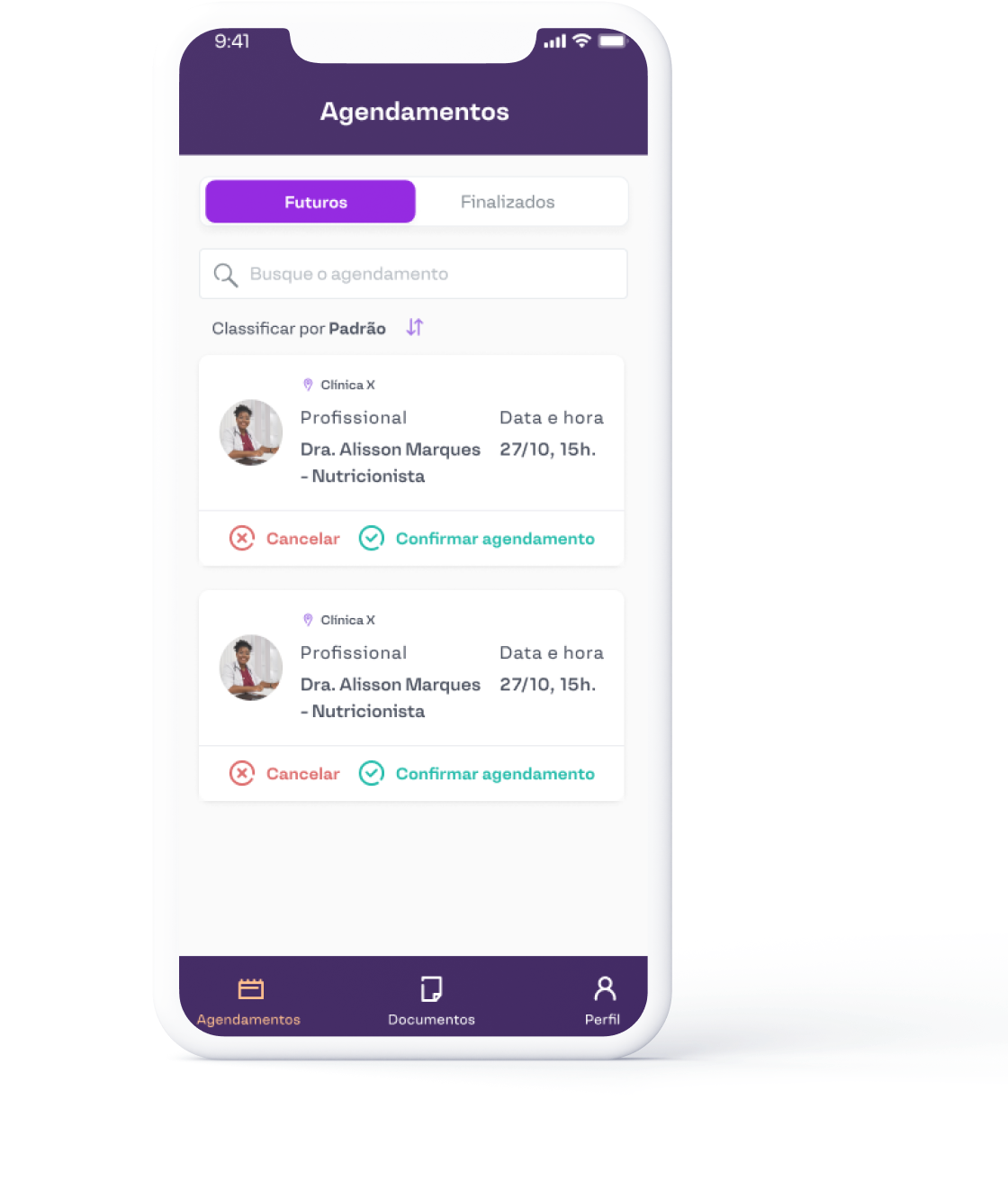 Todos os seus dados de saúde e agendamentos em um único espaço, com acesso simples e rápido.